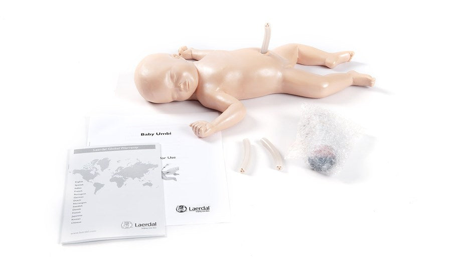 Baby Umbi was designed for the practice of umbilical catheterization and is a reproduction of a female newborn infant.