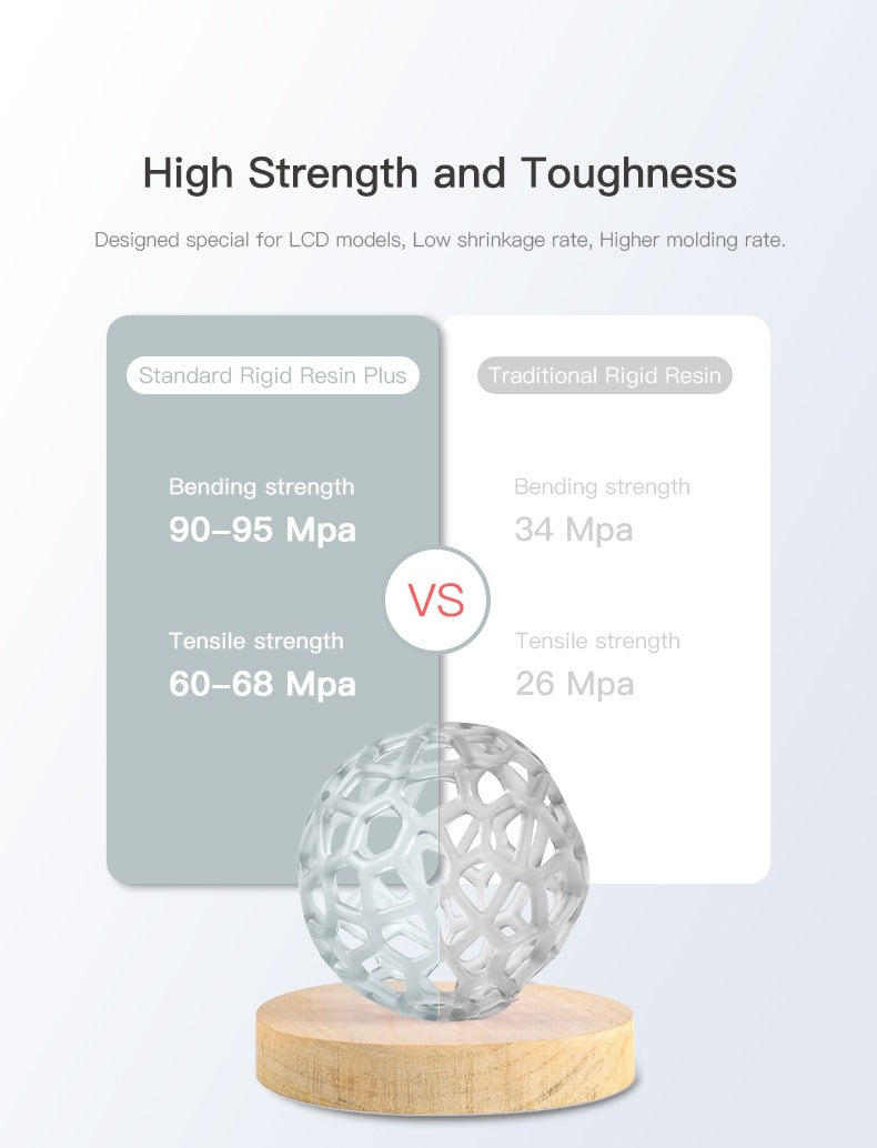 Creality's Rigid Resin Plus, prints faster, prints with more stability, and is a professional grade LCD resin.