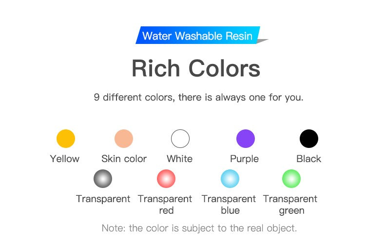 Creality's water washable resin is a great alternative to traditional resins that are cleaned in hazardous alcohols. Being water washable it is more friendly to the environment, and much safer for the user.