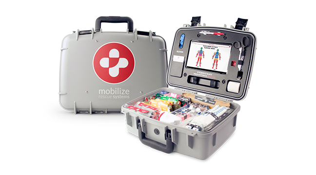 - An integrated tablet with the Mobilize Rescue App built-in provides ‘just-in-time’ training to help untrained bystanders save lives.