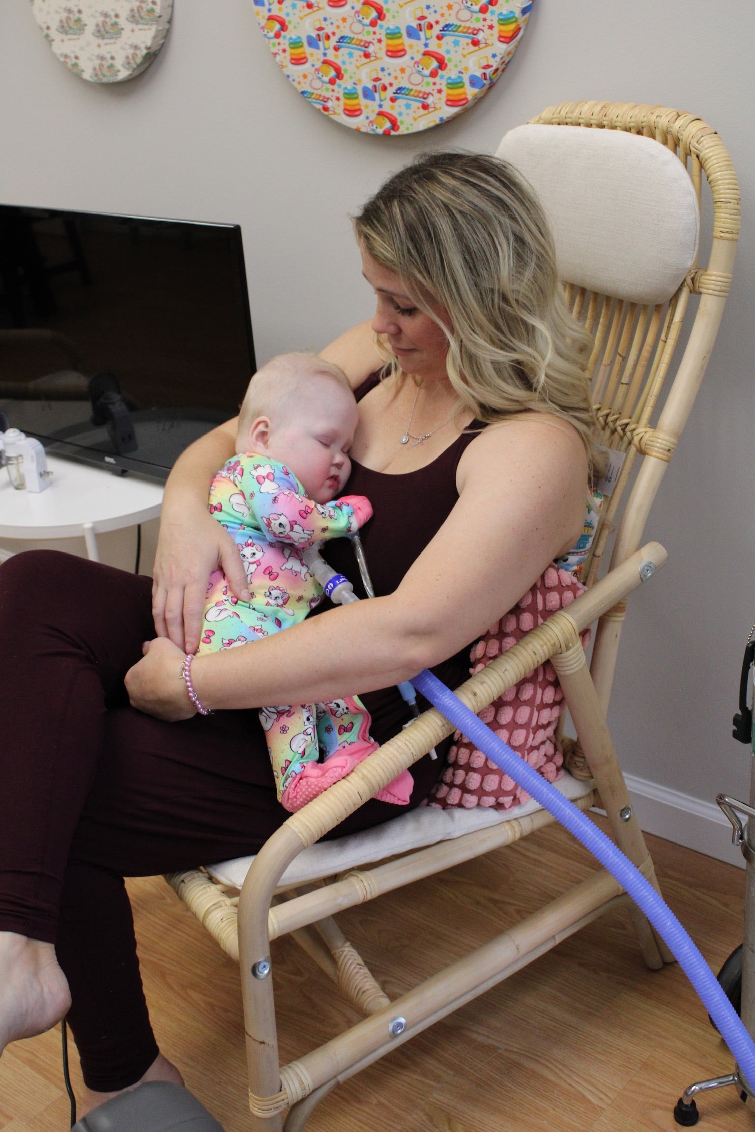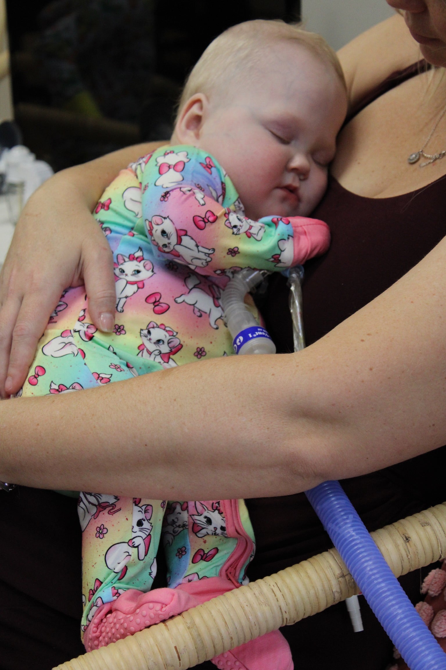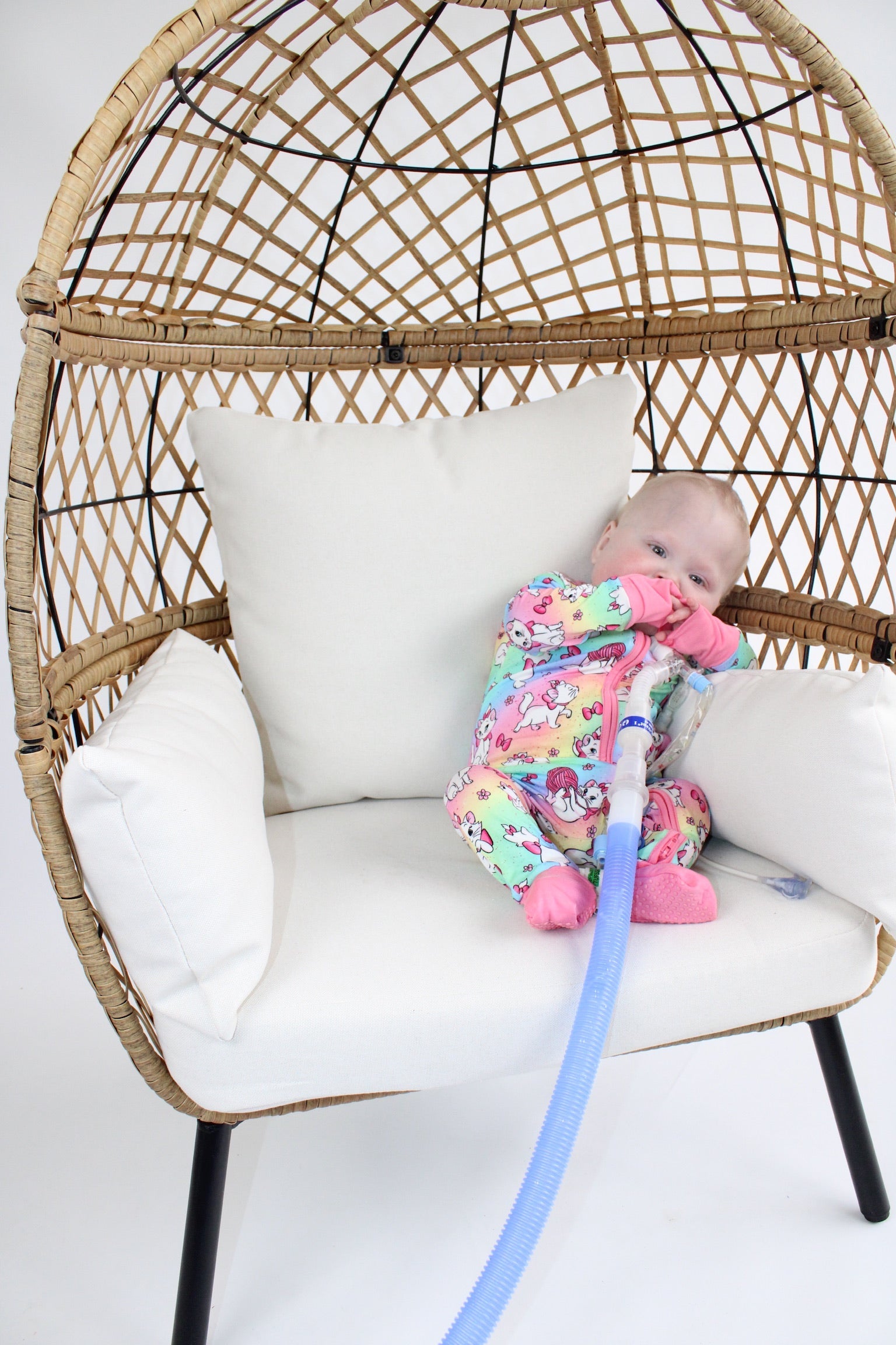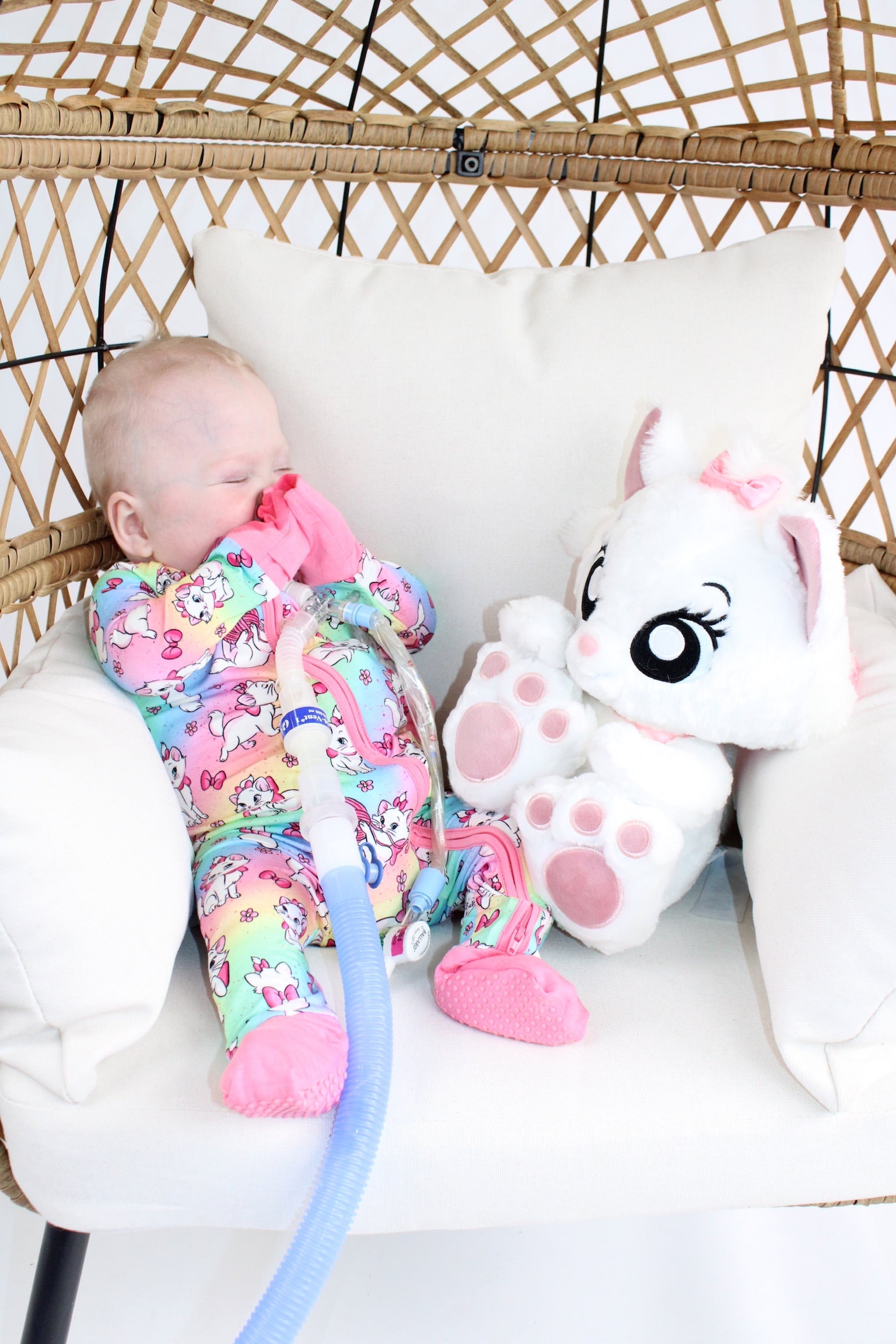 - Button port access on side of zipper romper for tubes to be easily accessible
