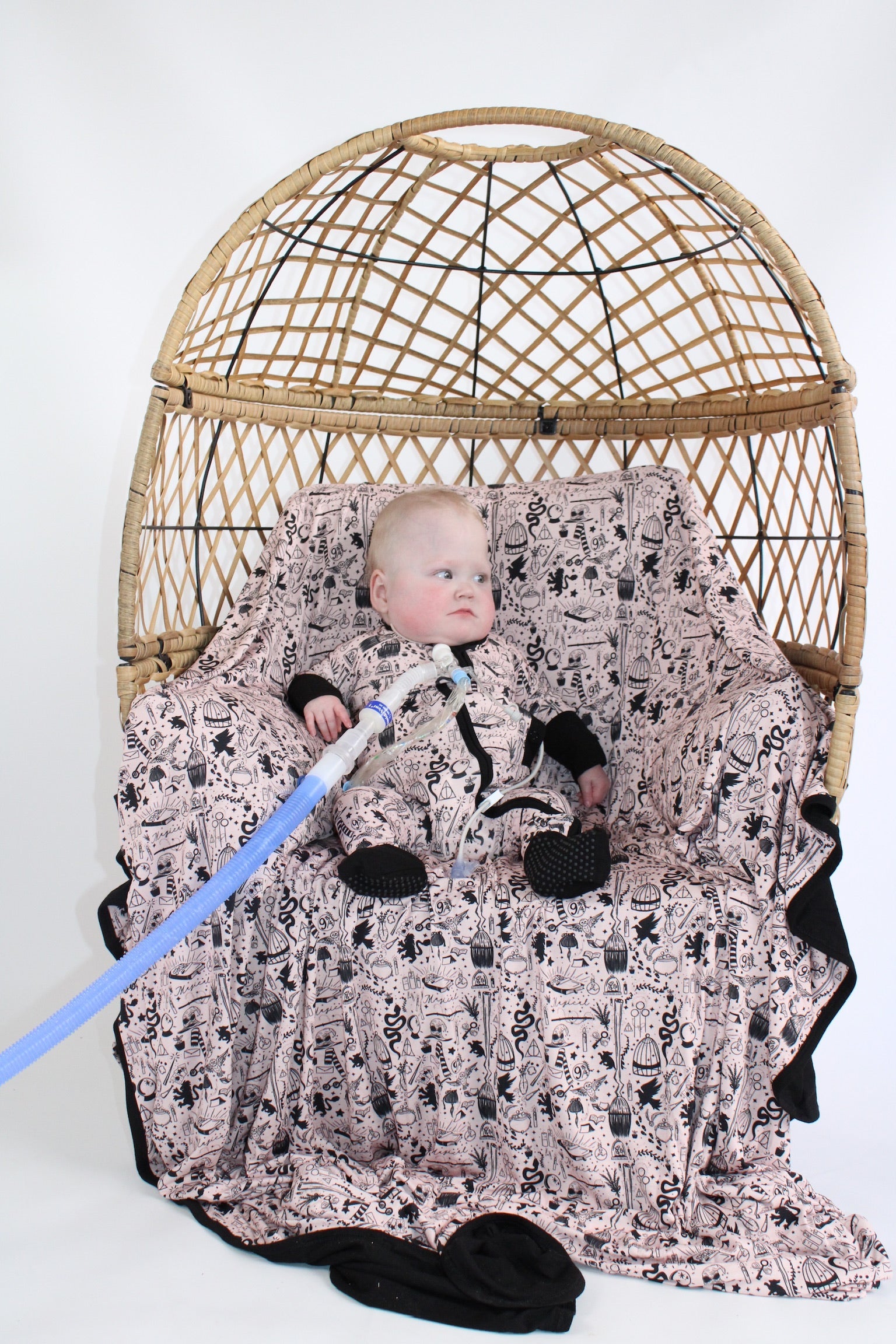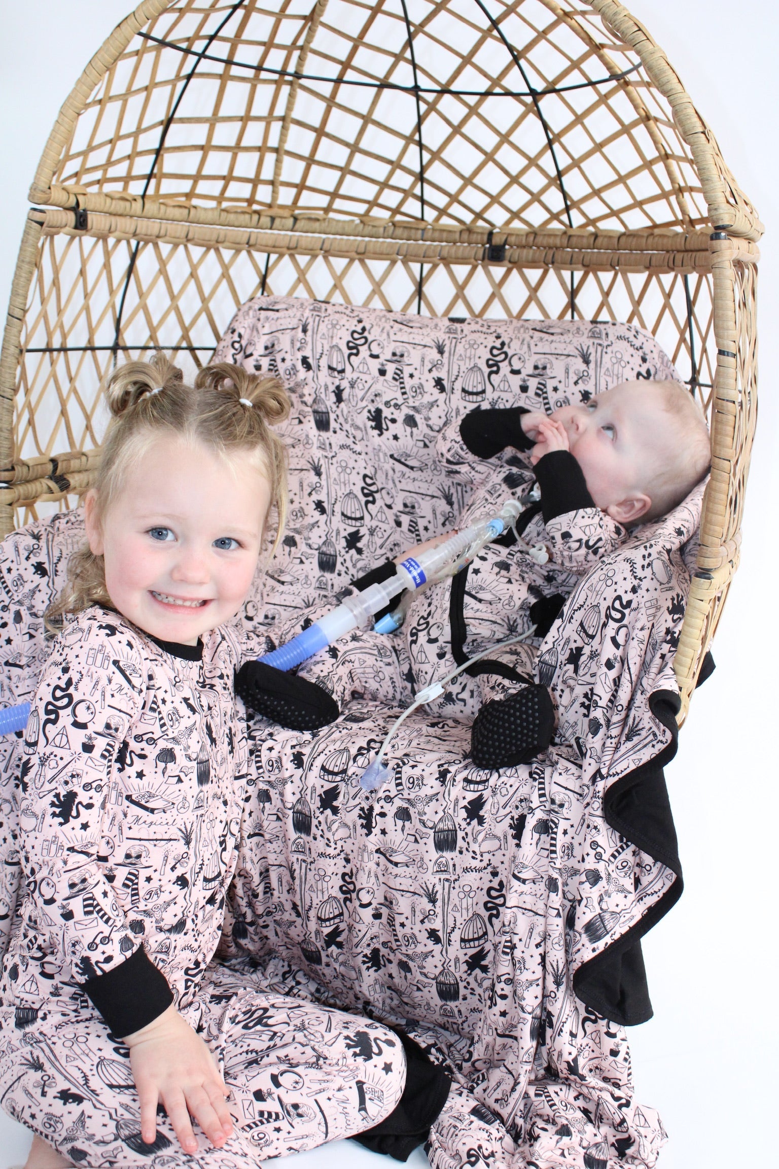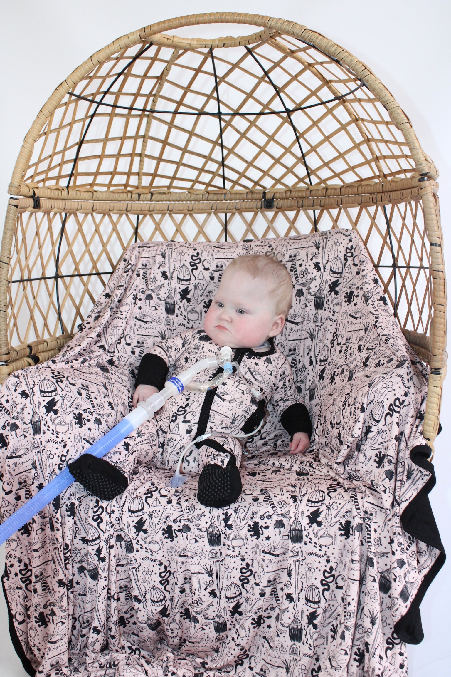 - Button port access on side of zipper romper for tubes to be easily accessible