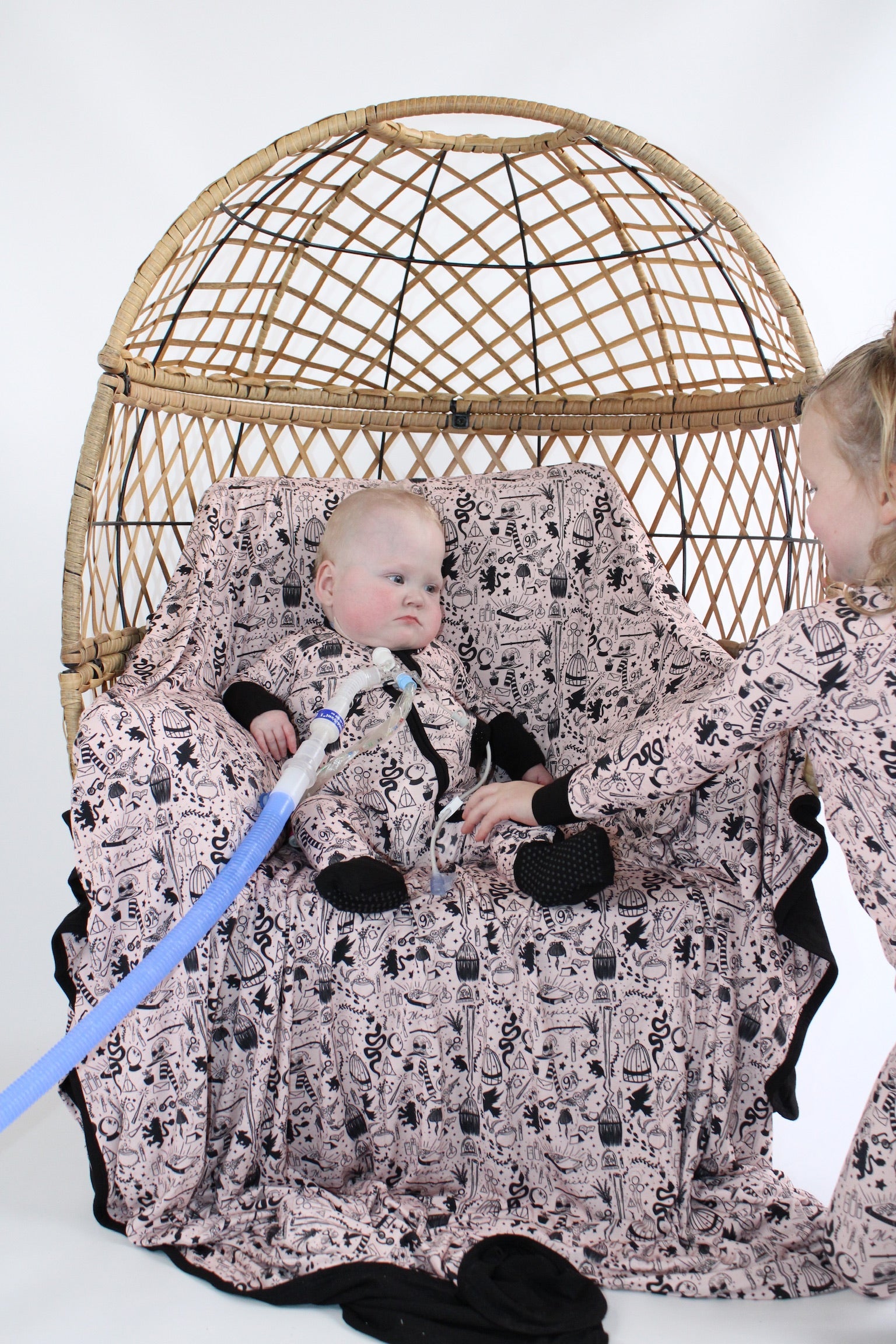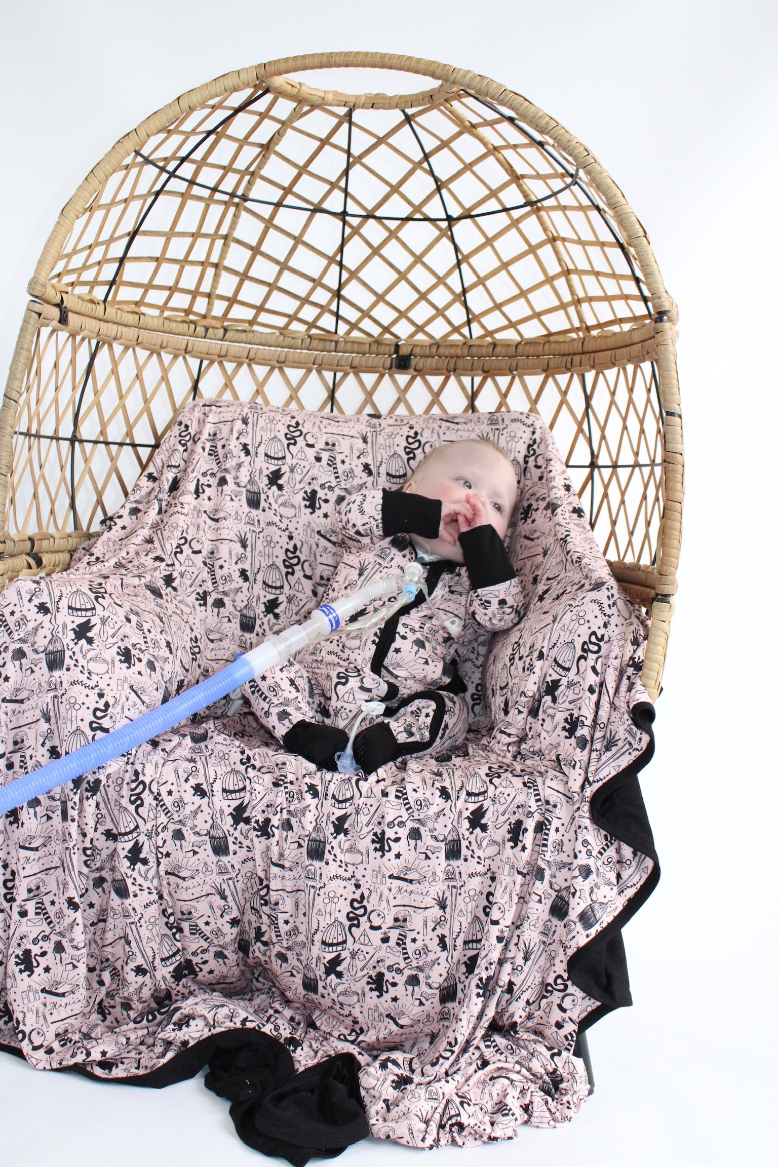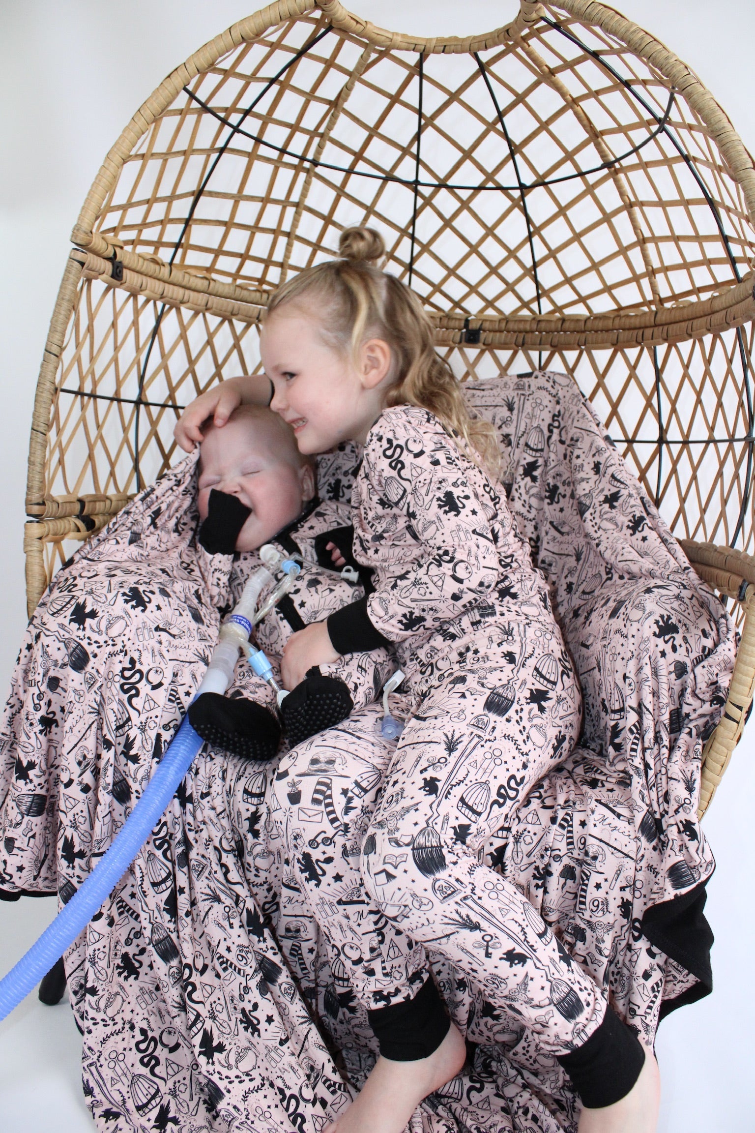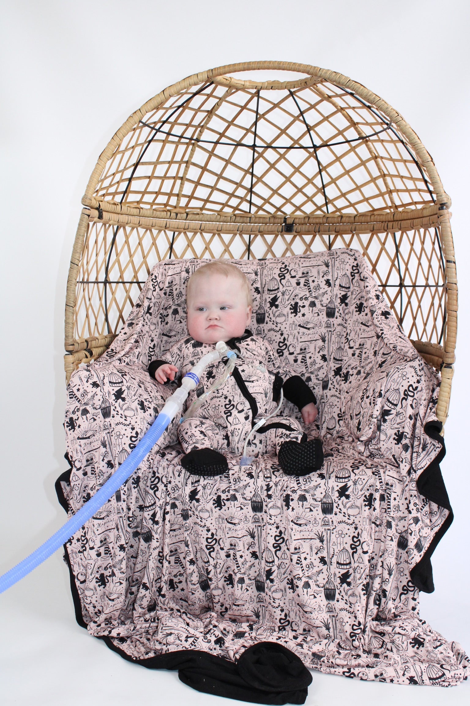 - Button port access on side of zipper romper for tubes to be easily accessible