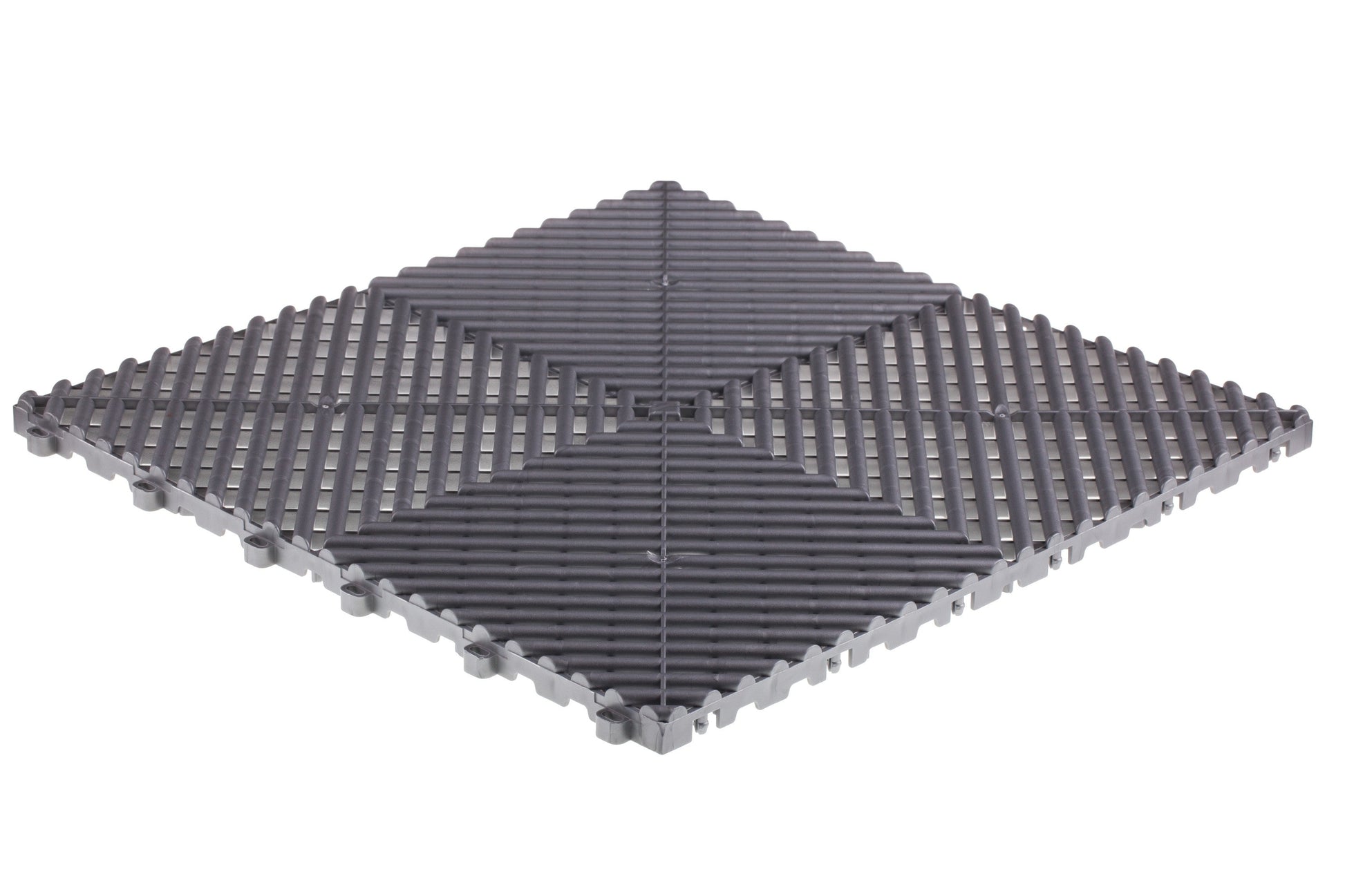 The unique open profile cross action design of the Ribtrax tile has made it the most popular tile in our entire collection. It has earned its place as the most versatile and durable tile for many reasons, including it's ability to withstand extreme and adverse elements. A striking look paired with easy maintenance makes Ribtrax the premier choice for Commercial and Residential applications alike- including . . . boat decks, showers, garages, event floors, workshops, aircraft hangars, gym's, and patios in any climate condition. The overall strength and design of our Ribtrax tiles allows for heavy items such as rolling creepers, jack stands and tool boxes to sit or easily maneuver across the floor.